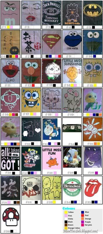 So I came online got bombarded with questions of er is what does the japanese words of the tee-shirt that's selling at yirong's blogshop say is it vulgar etc blah blah. so i was like no i don't think that it is it isn't even remotely close to bakayaro probably just the name of the black round thing on the tee (see no.6) so don't worry too much michelle. oh yah yirong&grace are you reading this? See the above? i want advertising fees ya know.
